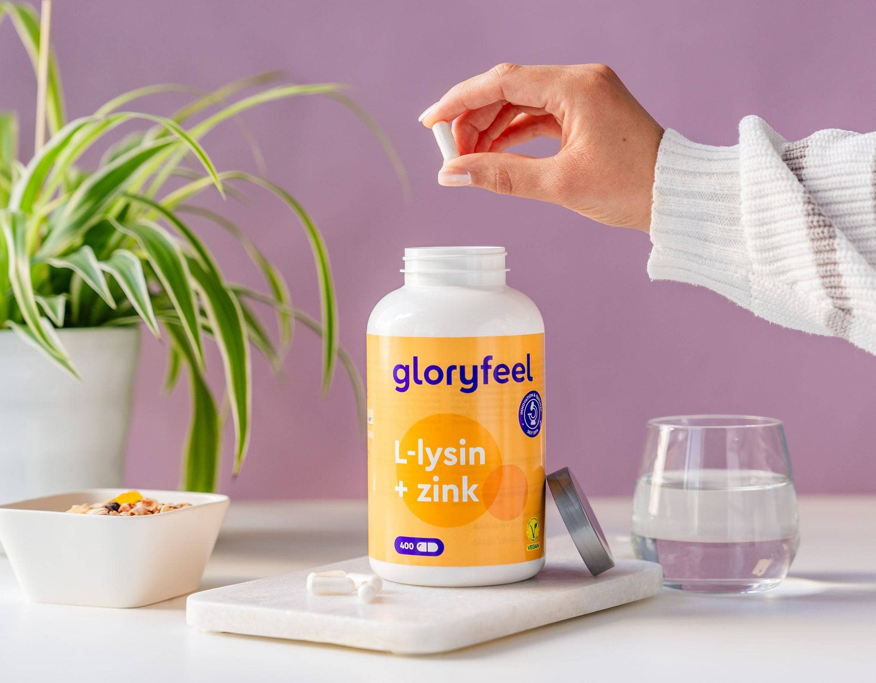 Du kannst L-Lysin hochdosiert im Mix mit Zink ganz einfach in unserem gloryfeel Online-Shop bestellen.